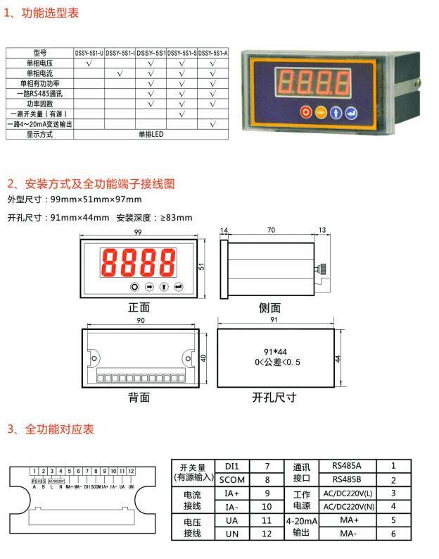 DSSY-5S1单相多功能电力仪表