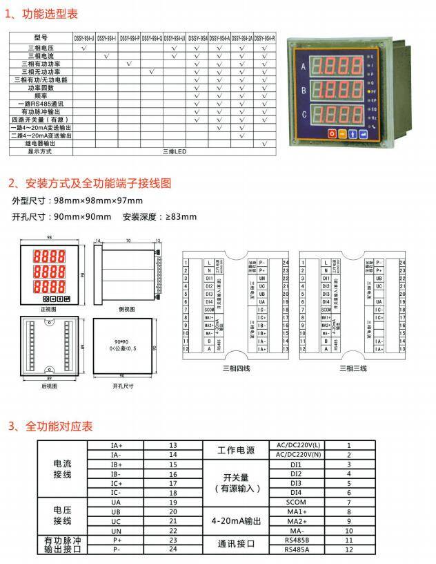 DSSY-9S4三相多功能电力仪表